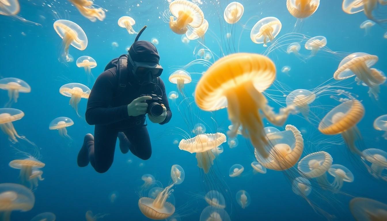 Many divers seek out specific regions known for abundant jellyfish populations. The waters around the Palau Islands in Micronesia host the famous Jellyfish Lake, where thousands of non-stinging jellyfish dominate the area. Australian waters, particularly near Tasmania, also feature remarkable species like the Bluebottle and Moon Jelly. The Caribbean Sea showcases sites like the Great Barrier Reef, where various jellyfish thrive amid vibrant marine life. Each of these spots offers optimal visibility and varied lighting conditions, ideal for photography.