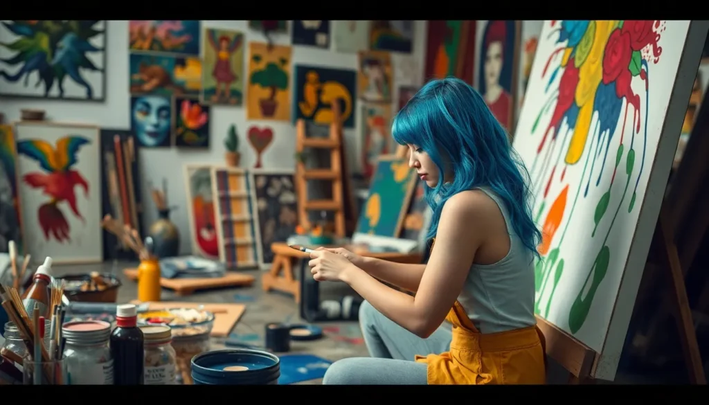 Pablo Picasso revolutionized art with his Cubist paintings, such as “Les Demoiselles d’Avignon,” which challenged perceptions of form and space. Vincent van Gogh’s “Starry Night” remains iconic for its expressive brushwork and emotional depth. Frida Kahlo’s self-portraits, such as “The Two Fridas,” explore identity and personal experiences. Each artist’s unique approach showcases how distinctive perspectives shape the art world.